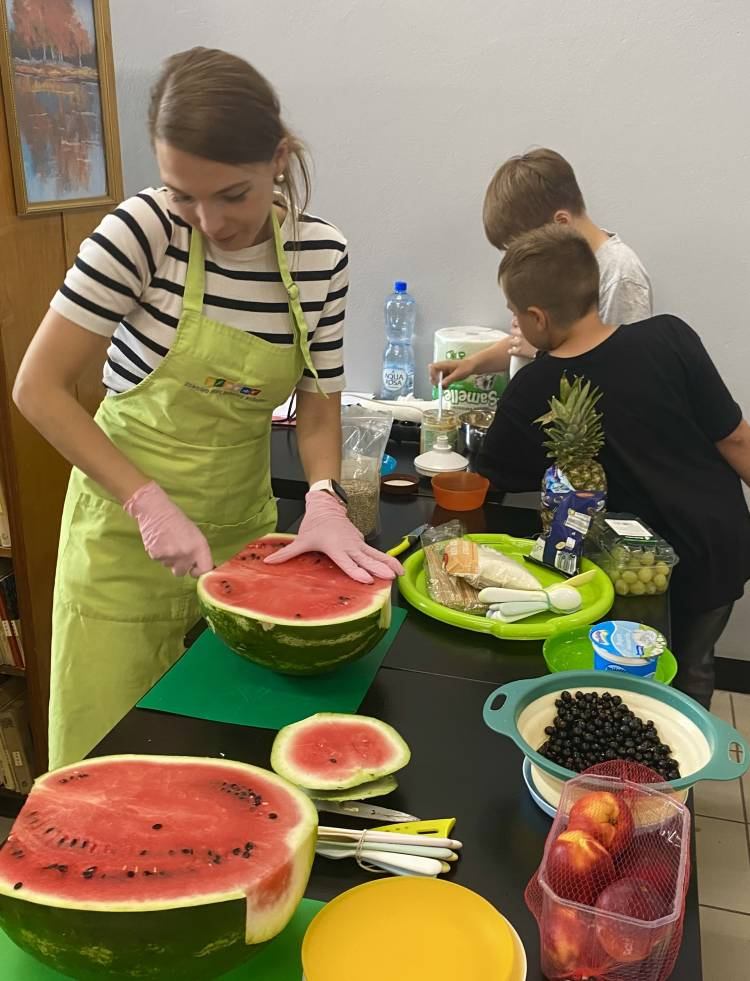 Tematem przewodnim warsztatów było tworzenie zdrowych alternatyw dla popularnych przekąsek, a główną propozycją kulinarną była pizza z arbuza – kreatywna i lekka wersja znanego dania, idealna na letnie dni.