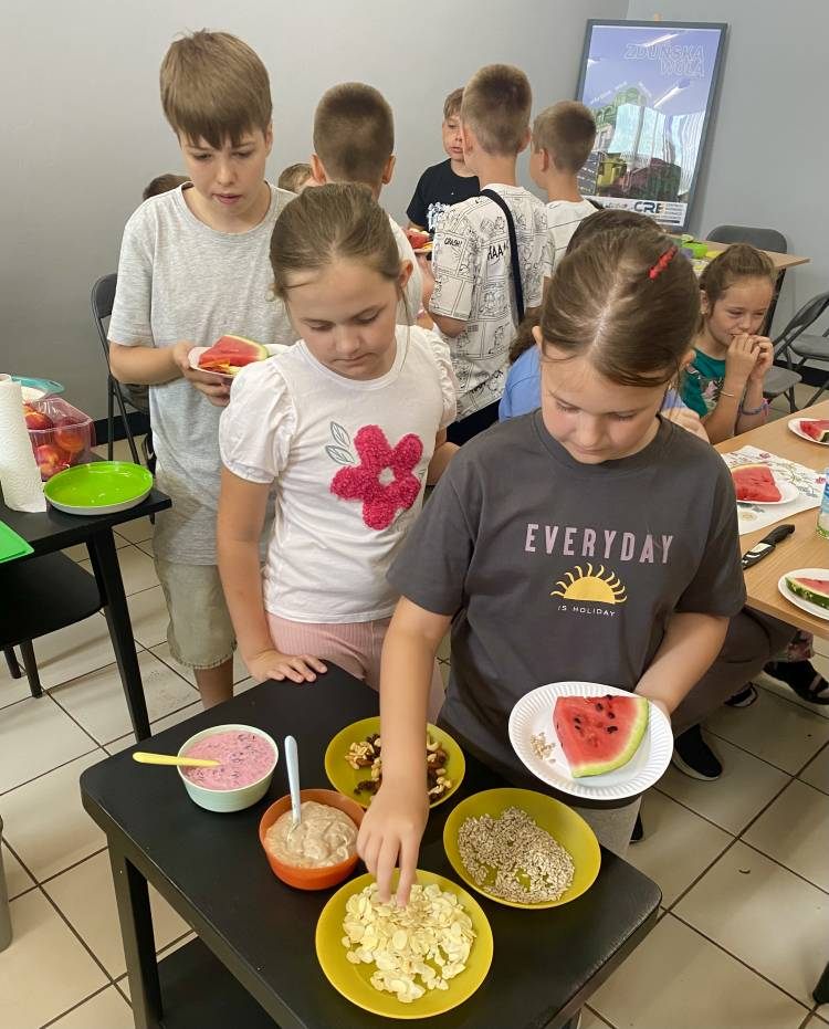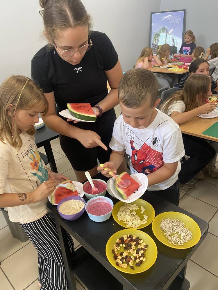 Uczestnicy mieli okazję własnoręcznie przygotować pizzę z plasterka arbuza, dekorowaną świeżymi owocami, smacznymi sosami i zdrowymi posypkami.