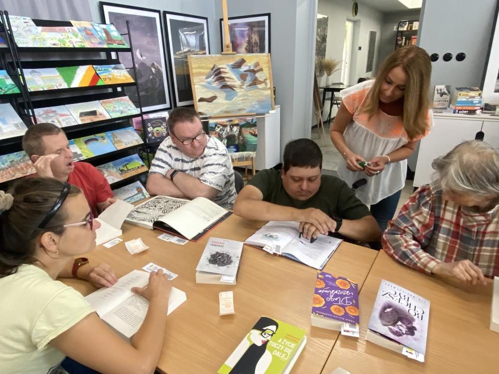 Za nami wyjątkowe spotkanie, które odbyło się w ramach wakacyjnych zajęć. Gościliśmy grupę podopiecznych Środowiskowego Domu Samopomocy przy ul. Łaskiej 59 w Zduńskiej, którzy mieli okazję poznać drogę jaką pokonuje książka zanim trafi w ręce Czytelników.