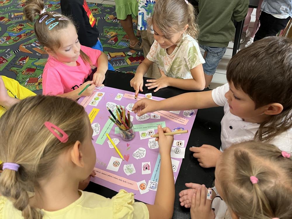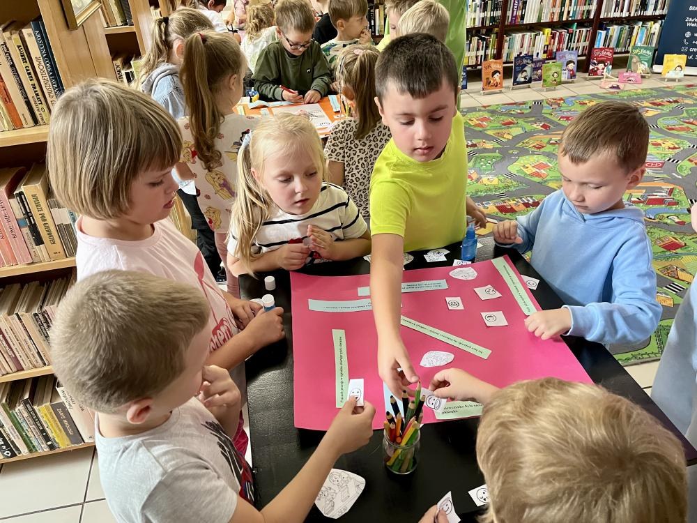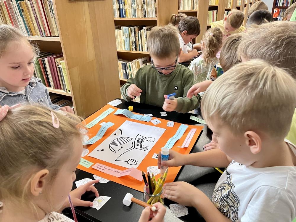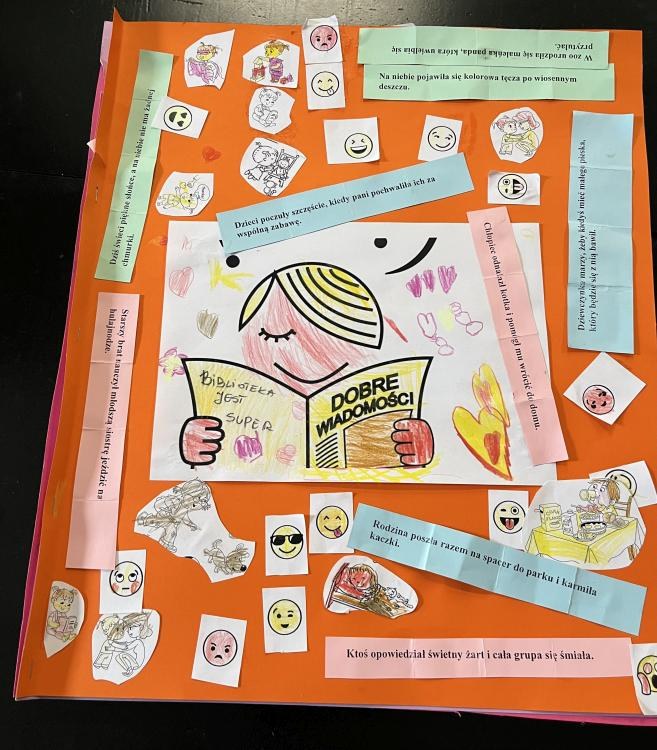 8 września obchodziliśmy wyjątkowe święto – Dzień Dobrych Wiadomości. Z tej okazji nasza Biblioteka miała zaszczyt gościć dzieci z Publicznego Przedszkola nr 5 w Zduńskiej Woli. Spotkanie to stało się piękną okazją do wspólnego świętowania, pełnego uśmiechów, życzliwości i pozytywnej energii. Przedszkolaki wysłuchały zabawnej historii autorstwa Rachel Bright pt. „Gekon, który odkrył echo”, a następnie z ogromnym zaangażowaniem i radością, stworzyły barwną gazetkę wypełnioną dobrymi myślami i serdecznymi przesłaniami. Powstało dzieło, które nie tylko cieszy oczy, lecz także przypomina, jak wielką moc mają dobre słowa.