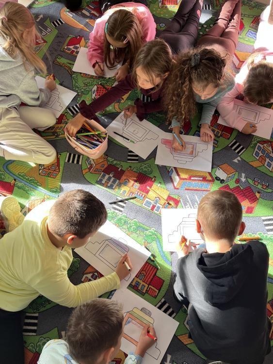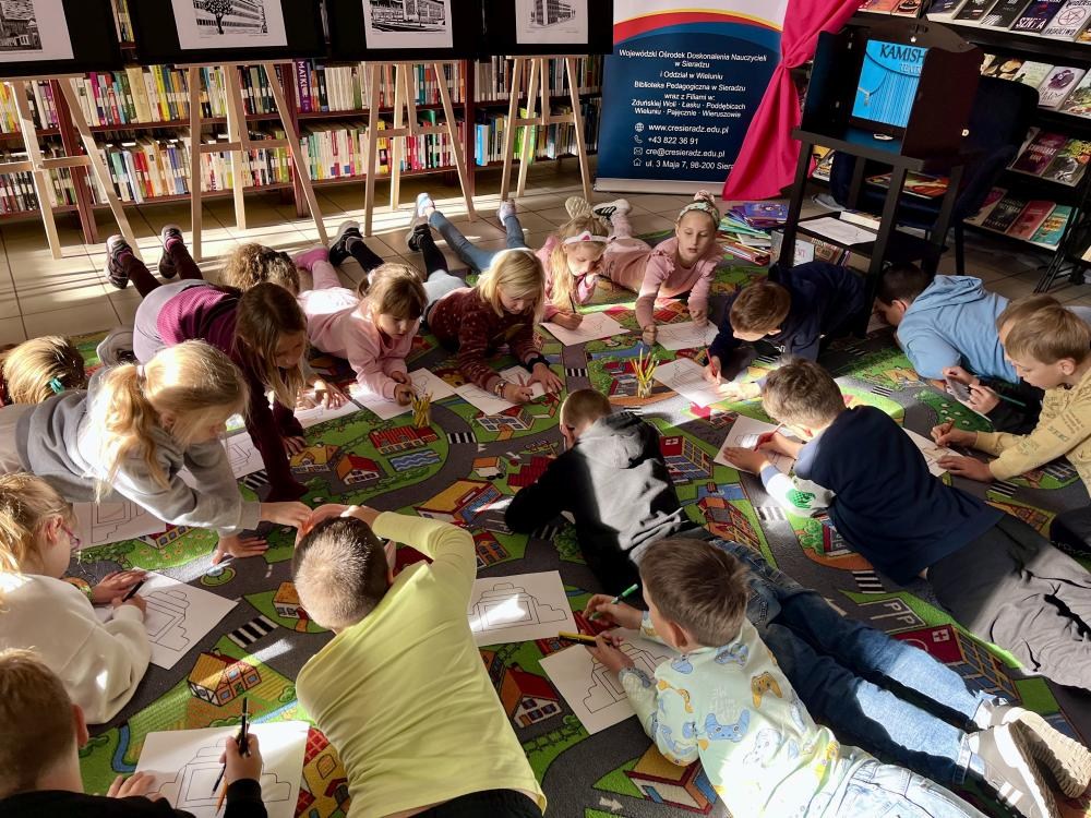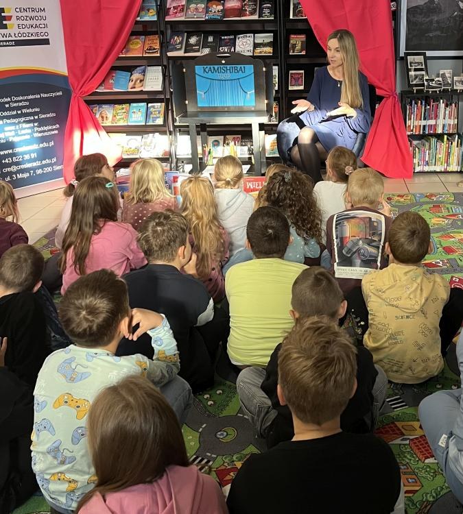 W dniu dzisiejszym gościliśmy drugą klasę ze Szkoły Podstawowej nr 2 w Zduńskiej Woli na zajęciach poświęconych teatrzykowi kamishibai. Dzieci poznały niezwykły teatrzyk i wysłuchały legendy o Bazyliszku. Po czytaniu przyszła pora na kreatywną zabawę – powstały piękne prace plastyczne oraz własne, wymyślone przez dzieci opowiadanie, które zaprezentowały w formie mini-teatrzyku.
