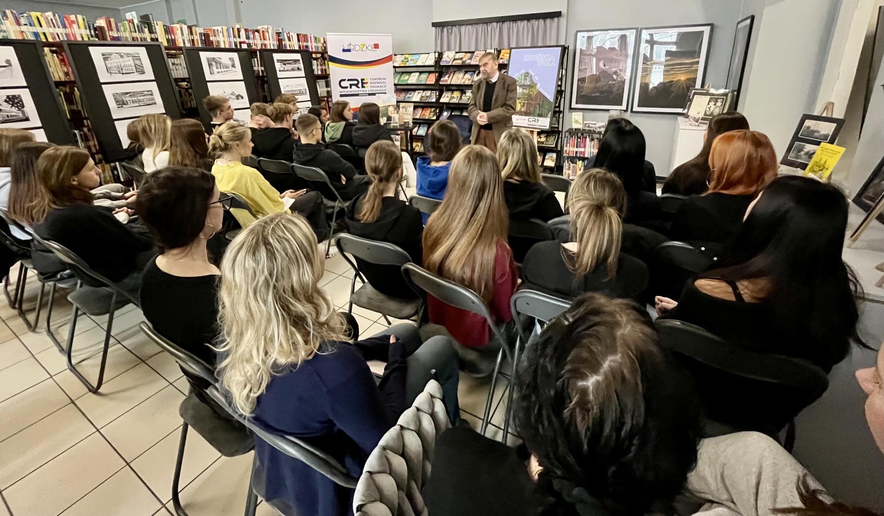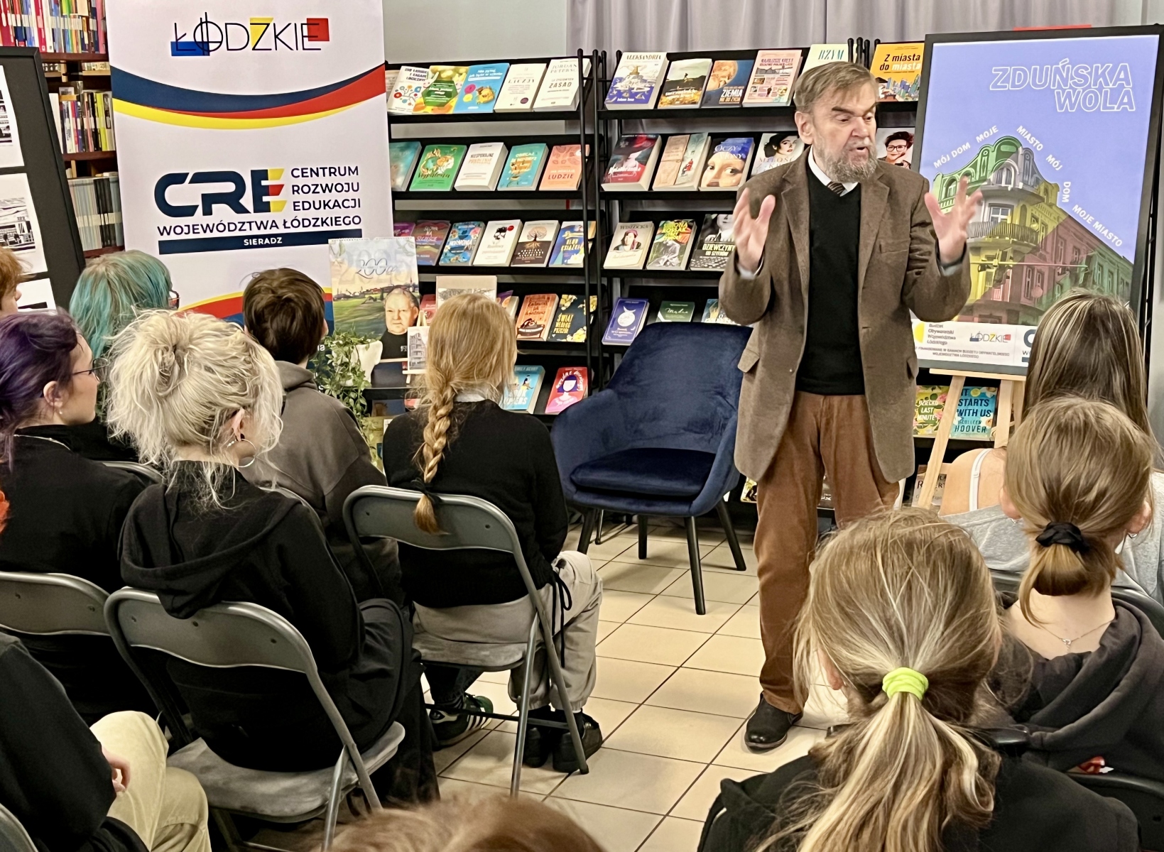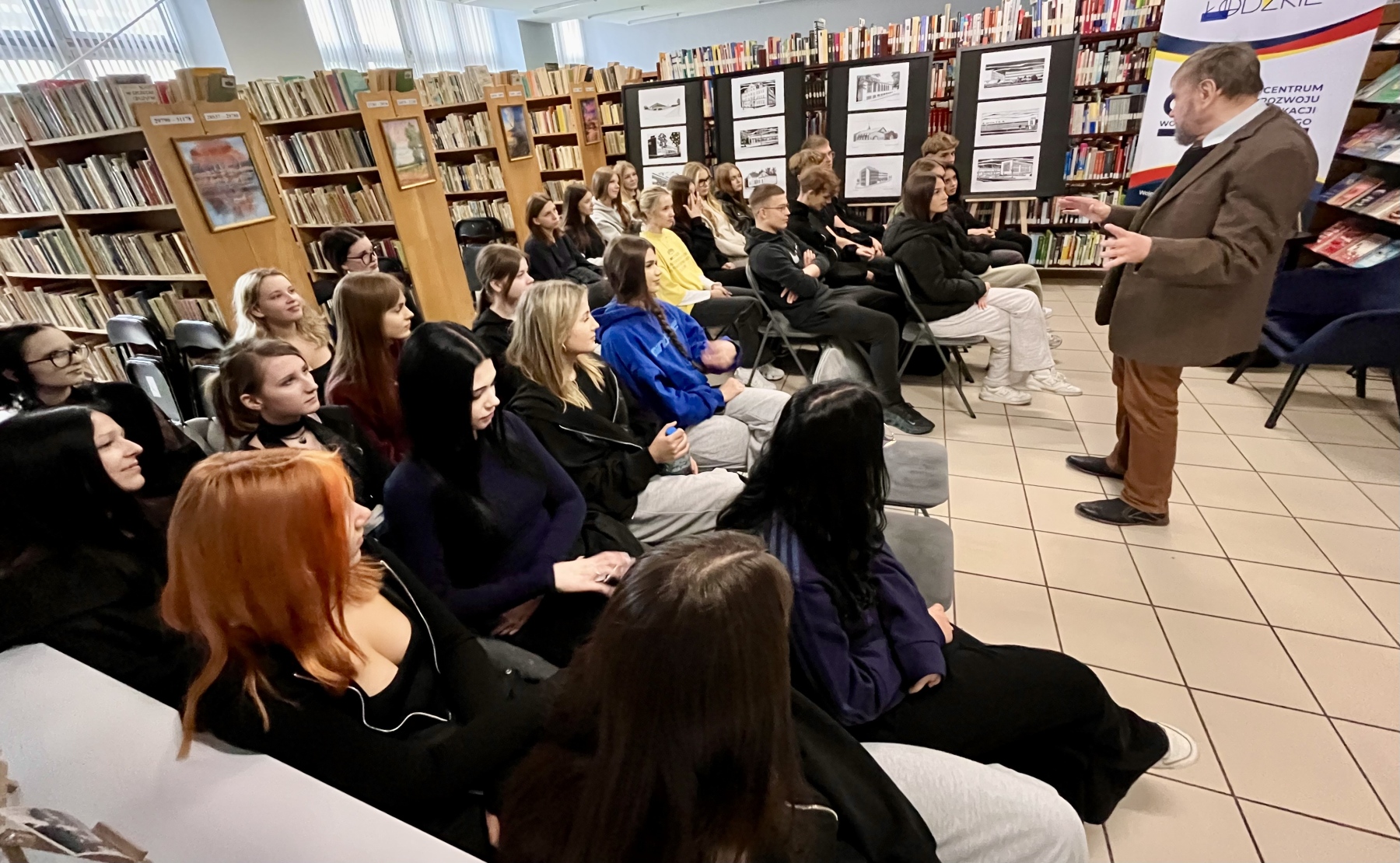 W dniu 27 października 2025 roku w naszej Bibliotece odbyły się dwa spotkania z historykiem – Panem Jackiem Jordanem, znanym pasjonatem dziejów i kultury polskiej. Uczestnikami wydarzenia byli uczniowie II i III klasy z Państwowego Liceum Sztuk Plastycznych im. Katarzyny Kobro w Zduńskiej Woli oraz III klasy z I LO im. Kazimierza Wielkiego w Zduńskiej Woli.