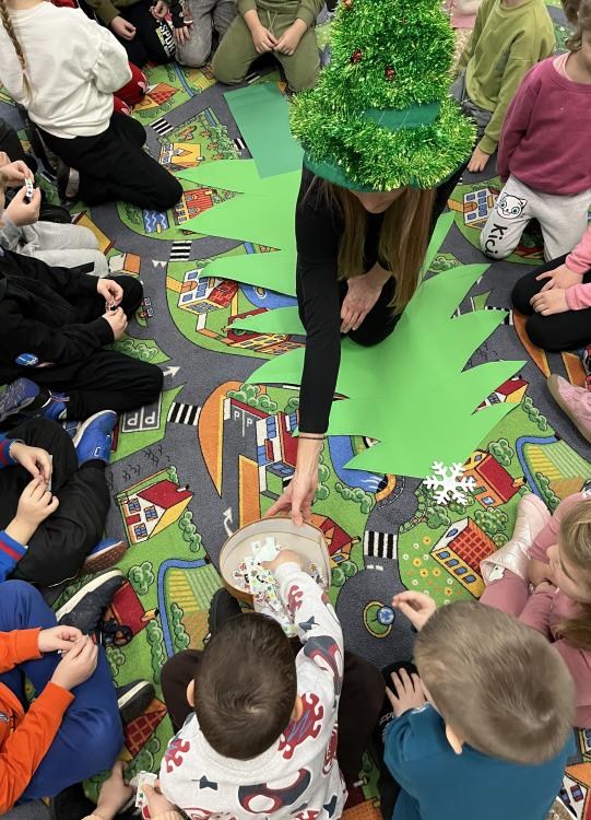 8 grudnia nasza Biblioteka zamieniła się w prawdziwą Krainę Świąt, a jej gośćmi były urocze przedszkolaki z Publicznego Przedszkola nr 6 w Zduńskiej Woli. Starszaki wyruszyły w niezwykłą, zimową podróż pełną bajek i opowieści, które rozgrzewają serca nawet w najchłodniejsze dni. Podczas spotkania dzieci miały okazję wysłuchać pięknej bajki pt. „Pani Zamieć” autorstwa braci Grimm, przedstawionej w formie teatrzyku kamishibai, który zachwycił wszystkich małych słuchaczy.