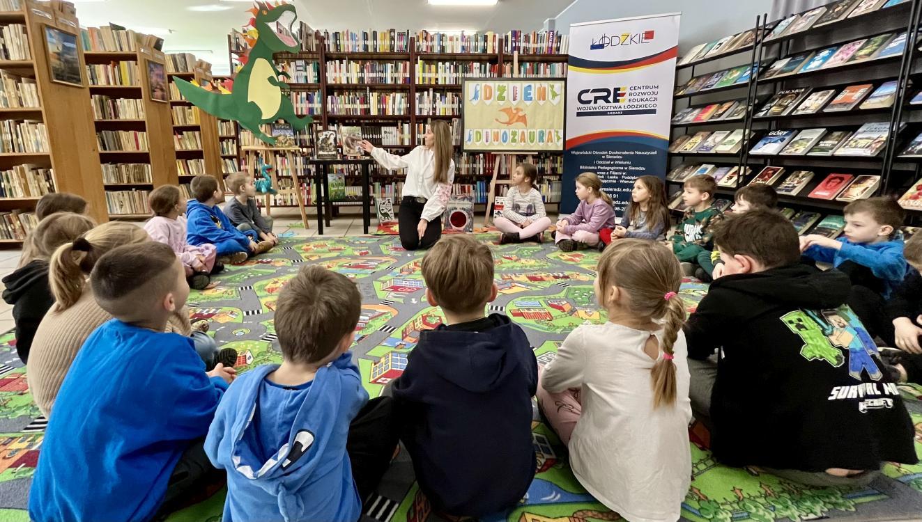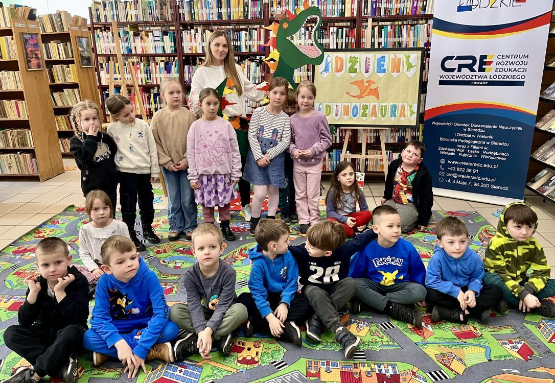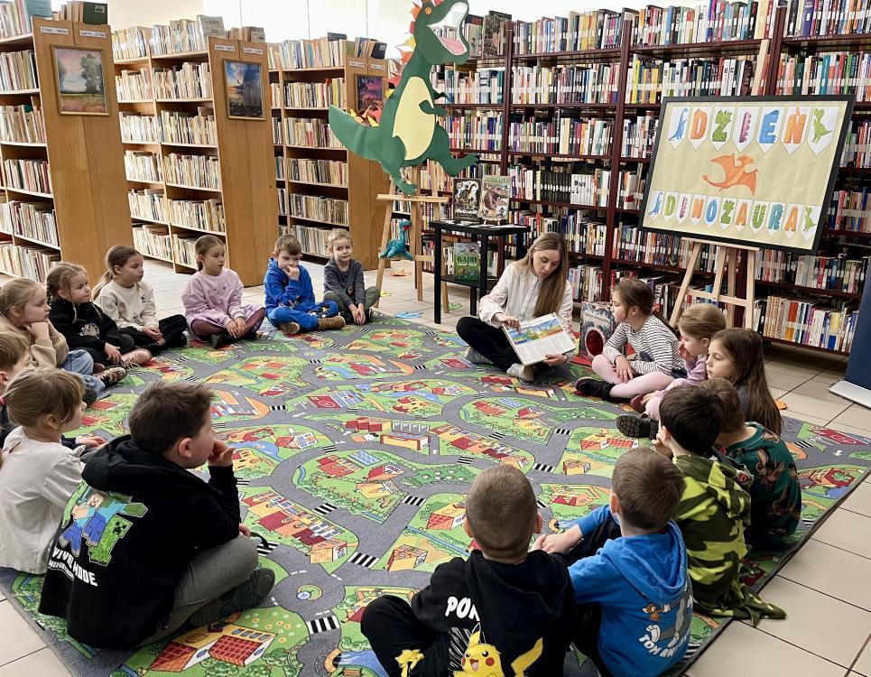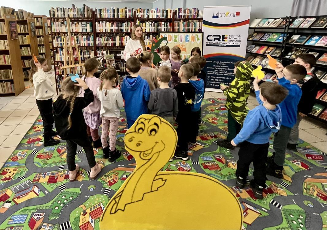 26 lutego świętowaliśmy w naszej bibliotece Dzień Dinozaura! Tego dnia odwiedziła nas grupa przedszkolna z Publicznego Przedszkola nr 2 w Zduńskiej Woli. Na początku spotkania uczestnicy wysłuchali opowiadania o dinozaurach, poznając ciekawostki o ich życiu i zwyczajach. Następnie dzieci z zapałem układały puzzle przedstawiające różne gatunki tych ogromnych gadów. Ogromną radość sprawiła im zabawa w paleontologa, podczas której mieli okazję przyjrzeć się skamielinom wykonanym z masy solnej. Niesamowitą atrakcją był przemarsz naszego bibliotecznego Dinozaura między regałami Biblioteki. Spotkanie przebiegło w miłej i twórczej atmosferze, rozwijając ciekawość poznawczą dzieci oraz zachęcając je do sięgania po książki o dinozaurach i przyrodzie.
