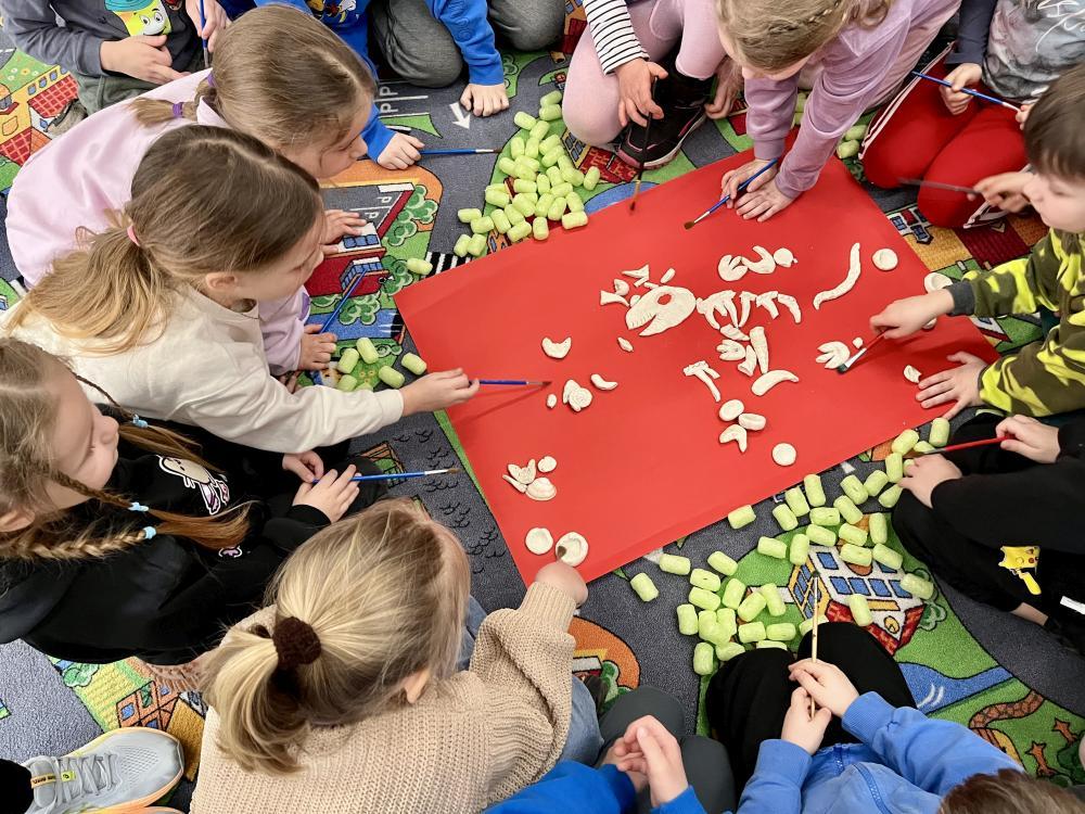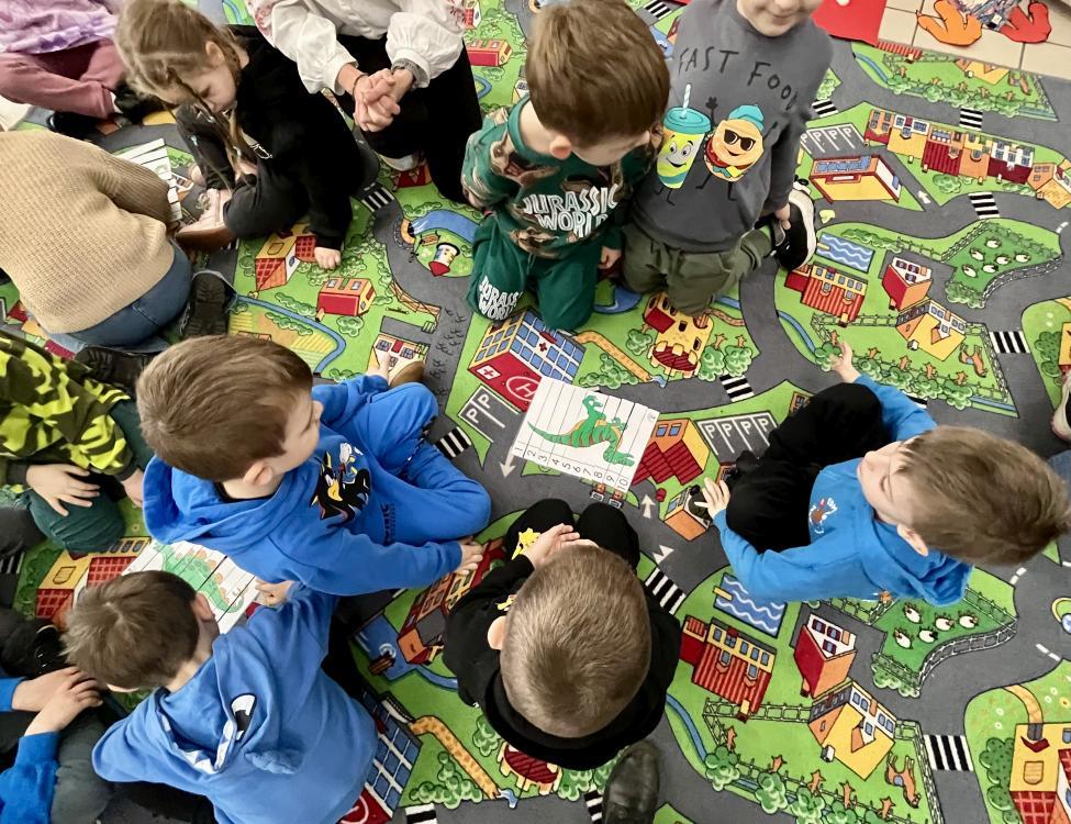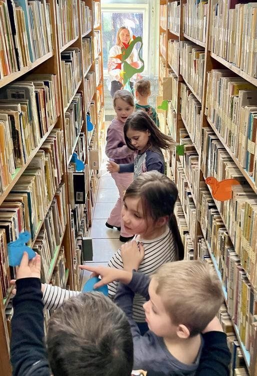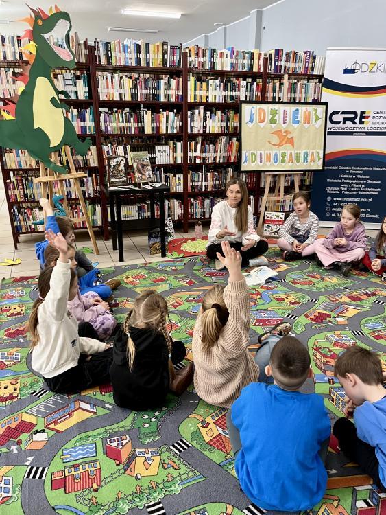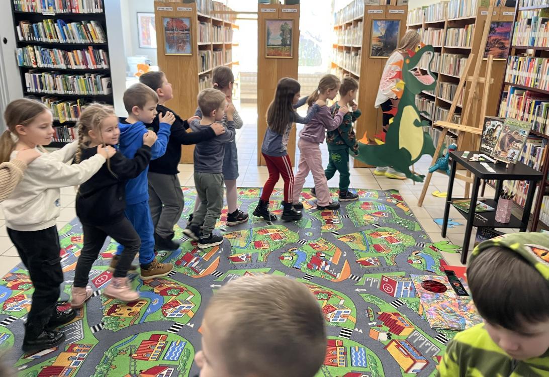 26 lutego świętowaliśmy w naszej bibliotece Dzień Dinozaura! Tego dnia odwiedziła nas grupa przedszkolna z Publicznego Przedszkola nr 2 w Zduńskiej Woli. Na początku spotkania uczestnicy wysłuchali opowiadania o dinozaurach, poznając ciekawostki o ich życiu i zwyczajach. Następnie dzieci z zapałem układały puzzle przedstawiające różne gatunki tych ogromnych gadów. Ogromną radość sprawiła im zabawa w paleontologa, podczas której mieli okazję przyjrzeć się skamielinom wykonanym z masy solnej. Niesamowitą atrakcją był przemarsz naszego bibliotecznego Dinozaura między regałami Biblioteki. Spotkanie przebiegło w miłej i twórczej atmosferze, rozwijając ciekawość poznawczą dzieci oraz zachęcając je do sięgania po książki o dinozaurach i przyrodzie.