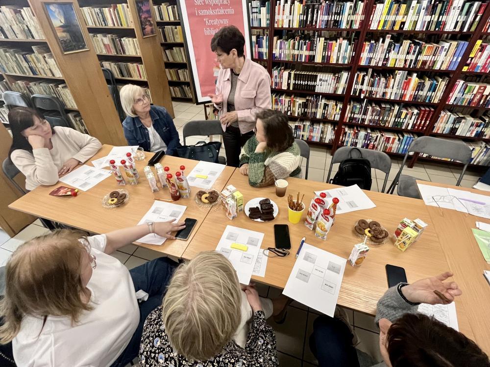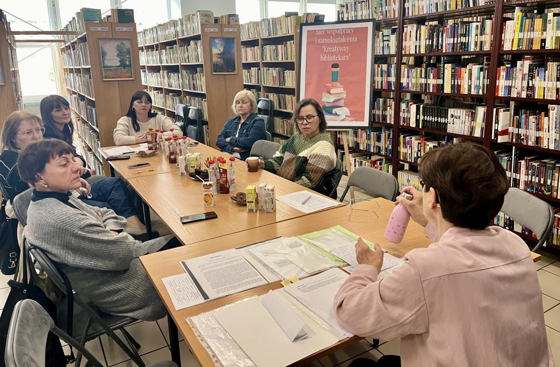 15 kwietnia 2026 r. odbyło się trzecie w tym roku szkolnym spotkanie w ramach działającej w naszej Bibliotece sieci współpracy i samokształcenia „Kreatywny Bibliotekarz”. Gościem specjalnym była Pani Anna Guć – konsultant Centrum Rozwoju Edukacji Województwa Łódzkiego w Sieradzu, która poprowadziła szkolenie pn. „Gdy proste staje się trudne”. Otrzymane materiały szkoleniowe wzbogaciły nasz warsztat pracy, który wykorzystujemy w codziennej pracy z dziećmi.
