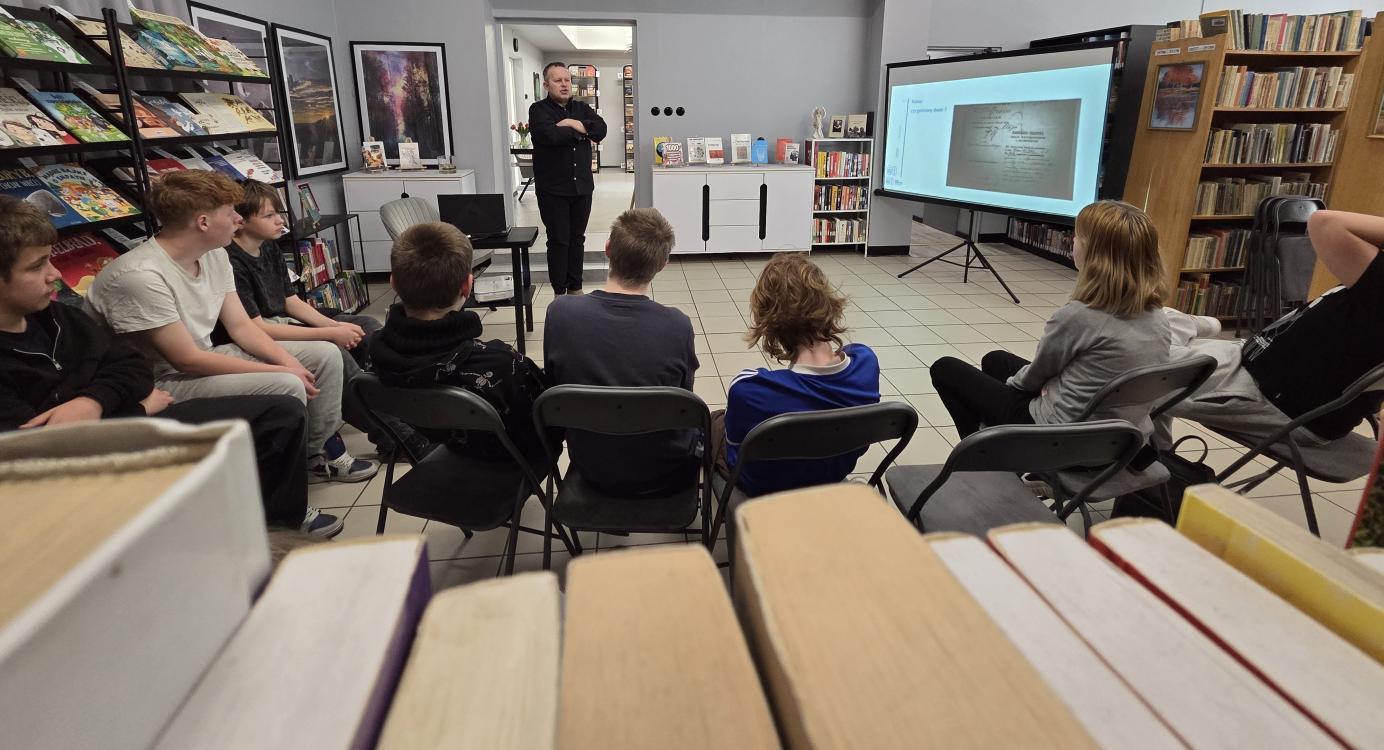 Na szczególne podkreślenie zasługuje fakt, iż przeprowadzony wykład powstał w oparciu o informacje zawarte w najnowszej książce pt. „Zduńska Wola. Miasto pełne historii”, którą Muzeum Historii Miasta Zduńska Wola ofiarowało naszej bibliotece. Publikacja ta stanowi opowieść o ludziach, którzy przez pokolenia budowali to miasto – ich pracy, determinacji i codziennym życiu. Co więcej, niezwykle ważne, pouczające i otwierające wykład okazało się pytania: „Czym jest bawełna?” oraz „W jaki sposób powstają materiały bawełniane?”, które mógł zadać mieszkańcom Stefan Złotnicki. Dzięki temu spotkanie stało się jeszcze bardziej wartościowe i spójne, łącząc przekaz ustny z literackim świadectwem dziejów Zduńskiej Woli.